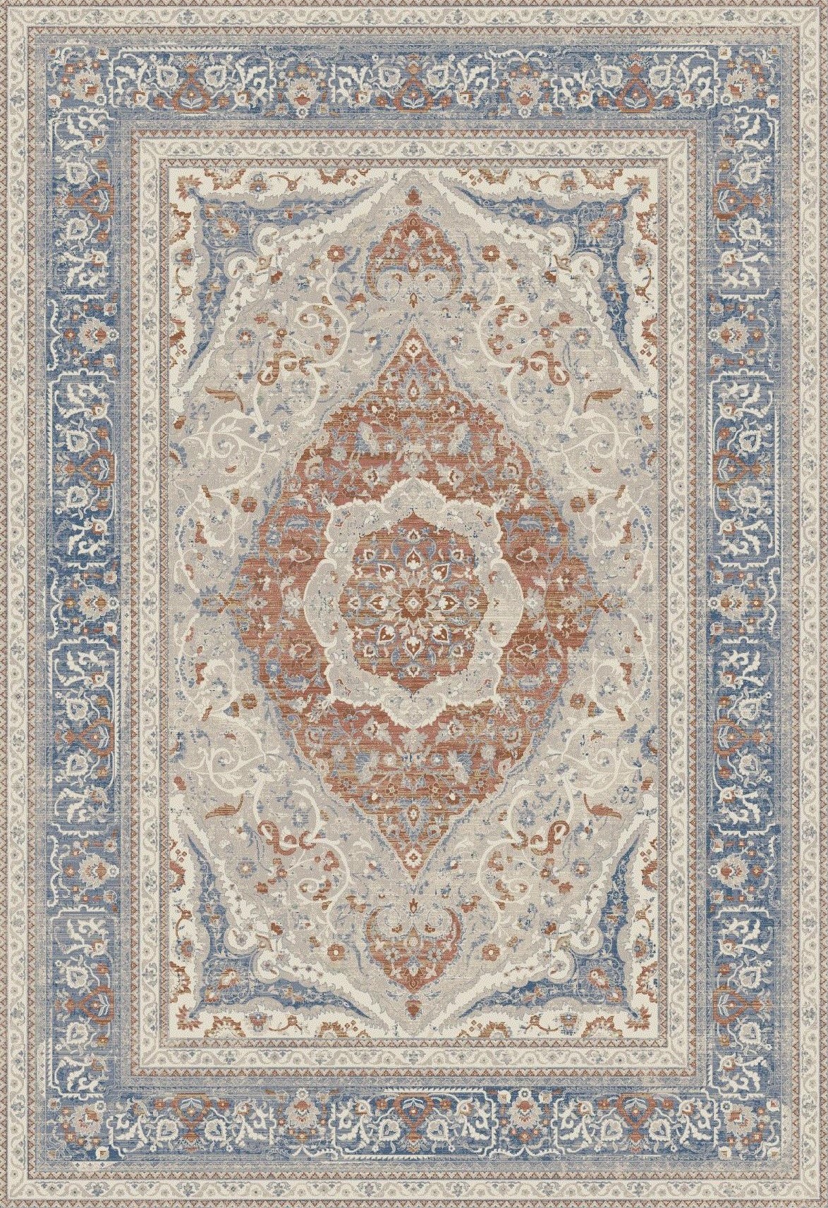 Intenza is a machine-made Turkish rug collection of neo-classic style rugs in a beige color base with touches of blue and terra. The traditional patterns as florals and medallions are distressed which creates a fusion of vintage and contemporary styles in one rug. This rug will add warmth to a living room with matching wooden furniture. The classic side of it embodies the element of balance and symmetry while the worn-out aspect of this rug breaks it with the elegance of an antique rug. Truly, Intenza is a dream rug.